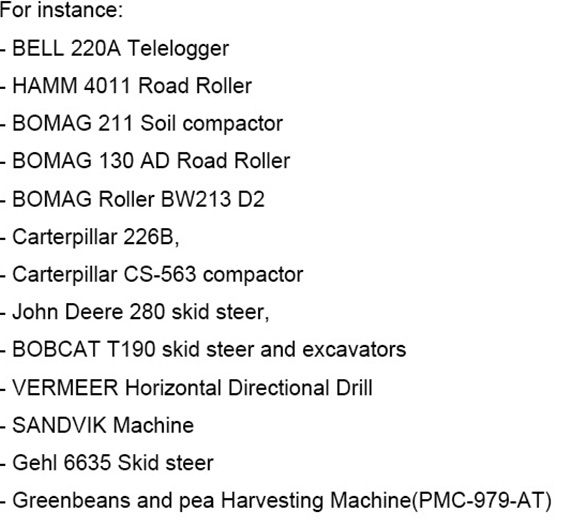 It is widely applied in Construction Machinery( skid steer loader,down-the-hole drill,rotary drill,mini and midi excavator,mixer truck, cutting machine), Mining Machinery(road header, scraper, heavy duty handing car, coal mine drill), Marine Machinery(gantry crane), etc.